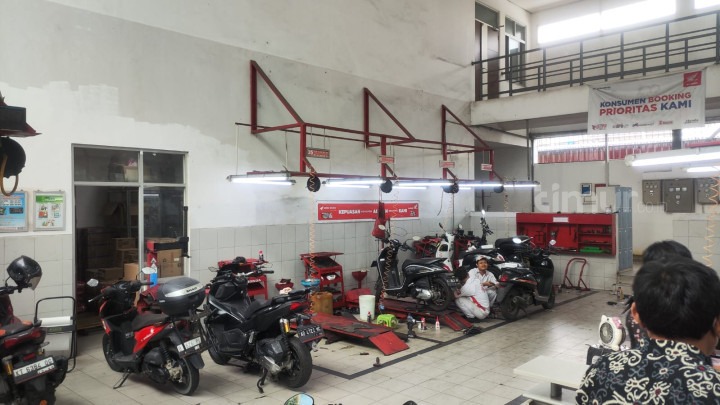 Redaksi mendatangi bengkel resmi Astra, disana nampak perbantuan perwakilan Pertamina stand by. Sampai Jumat (2/5) sudah, ada 25 motor yang dilayani.