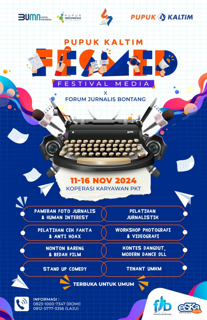 TIMUR. Festival Media (Fesmed) Pupuk Kaltim bakal hadir di Kota Bontang 11-16 November 2024 di Gedung Koperasi Karyawan PKT.