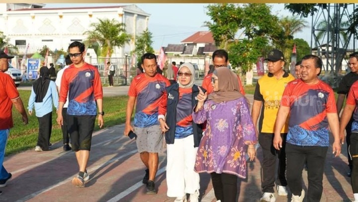 TIMUR. Wali Kota Bontang Neni Moernaeni mencak-mencak di agenda Bontang Running 2025, yang diselenggarakan Dinas Pemuda, Olahraga, Pariwisata, dan Ekonomi Kreatif (Disporapar Ekraf), Minggu (6/7/2025).